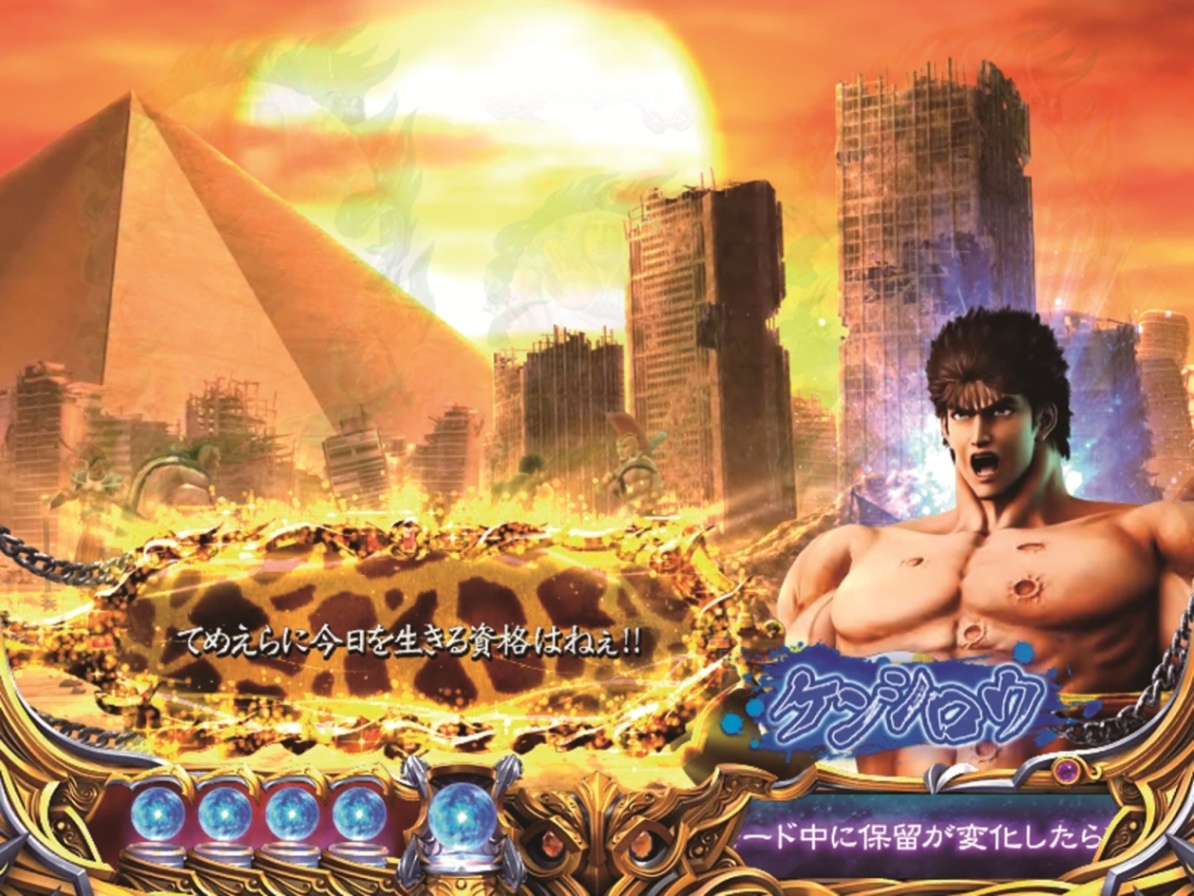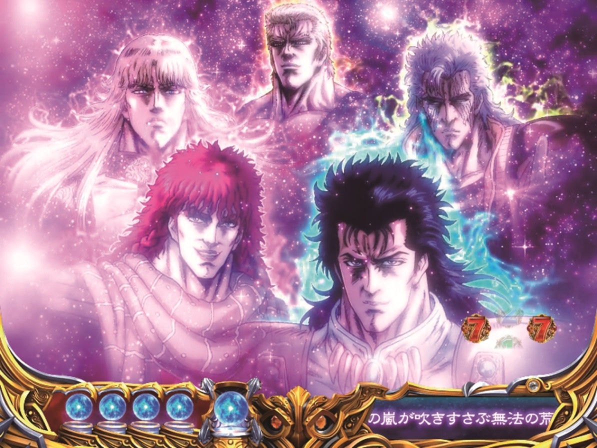 背景カットイン発生でバトル系リーチ後半 or ストーリーリーチ発展濃厚。 拳王軍以外のカットインは滞在ステージにより変化して、「アインの最後」「五車星群」「強敵群」「ザコ群」の4種類。 レイ昇天・ラオウ昇天は大当たり濃厚。 |