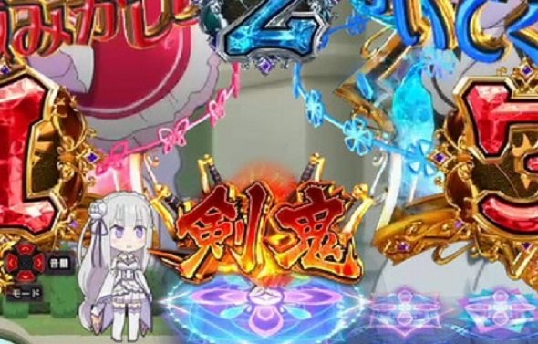 終わりの始まり予告 終わりの始まり図柄停止で発展する連続予告。3連目まで発展すれば期待度アップ。 禁書庫ステージ 変動開始時に禁書庫ステージへ移行すれば期待度アップ。 トータル期待度 54.9% ひざまくらステージ 移行時点でRUSH濃厚となる トータル期待度 RUSH濃厚 愛ゾーン 愛ZONE図柄停止で突入する期待大の先読みゾーン。 トータル期待度 76.8% タイトルロゴ予告 タイトルロゴ役物が落下し、その際のエフェクト色が赤だったり、キャラ背景が出現すれば期待度アップ ロゴ動作 期待度 振動 赤 35.2% 落下 絵① 77.5% 落下 絵② 90.2% 変動中 期待度 青エフェクト大 29.5% 赤エフェクト大 56.6% Re:ゼロミッション ミッション成功で抗いATTACKなどへ発展する。 ゼロからルーレット 期待度上昇保留出現のきっかけとなる演出。選択されたアイコンがそのまま保留へと変化する。 アイコン 期待度 青 大当り濃厚 緑 4.9% 赤 52.0% 金 80.2% 鬼アツ 98.0% とぼけないでください予告 レムとともに「とぼけないでください!」の文字が表示する演出。その後発生するレムのセリフに応じて、期待度が変化する。 演出パターン 期待度 チャンス 21.3% 大チャンス 89.5% 鬼アツ 90.0% びぃくとりー 大当り濃厚 トータル期待度 36.2% 白鯨チャレンジ 白鯨の文字が完成すれば発生する演出。ボタンをプッシュして白鯨が出現すれば、白鯨攻略戦リーチへ発展する。 スバルフリーズ 発生時点で期待度が高く、セリフが赤ならさらに期待度が上がる。 演出パターン 期待度 赤文字 89.3% トータル期待度 55.1% 突鬼演出 変動中に突如発生する可能性のある突発演出。発生時点で大当り濃厚。 鬼族階層予告 演出が成功すれば、鬼がかり予告発生濃厚となる。 抗いATTACK 変動中やリーチ後に発生する期待大の演出。プッシュボタンを押して背景の色が変化するほど期待度が上がっていく。 背景色 期待度 青 大当り濃厚 緑 大当り濃厚 紫 90.2% 赤 90.2% 金 大当り濃厚 トータル期待度 90.2% 始めるわよ予告 赤パターン発生で期待度アップ。 演出パターン 期待度 デフォルトパターン 26.1% 赤パターン 56.3% トータル期待度 32.9% キャラクターカットイン予告 キャラクターカットイン発生時は、赤や金パターンが出現すれば期待大。 演出パターン 期待度 ステップ1 赤 42.9% ステップ2 赤 59.7% ステップ2 金 92.6% 加護予告 発生すれば期待大となる予告。 トータル期待度 90.2% 轟転タイマー予告 ギミックが作動すれば期待度大幅アップ。 トータル期待度 66.3% モーニングスターフリーズ モーニングスターが出現して画面フリーズが発生、その後に様々なステージへ移行する。 トータル期待度 65.4% 魔女の手スタンバイ予告 魔女の手誘発モードや魔女の手役物煽りなどから発生知する期待度の高い予告。 トータル期待度 41.9% ※画像は兄弟機のものを含みます。※HAZUSE調べによるものです。