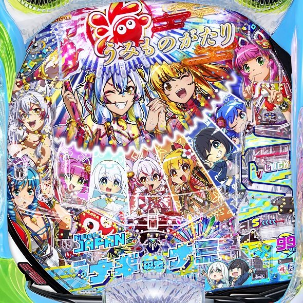ブランク図柄前兆予告 ブランク図柄の並びによって期待度が変化する。 半月リーチ 背景の月が赤色に変化すれば期待度アップ。 火鈴リーチ 火鈴が登場しボタンプッシュで当落を決めるリーチ。 赤満月リーチ マリンちゃんと火鈴が登場する期待大のリーチ。 突火鈴 火鈴が突然登場する一発告知演出。 ※画像は兄弟機のものを含みます。※HAZUSE調べによるものです。