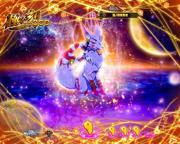 花火フラッシュ 役物と液晶が連動する一発告知演出、ロング告知なら奇数図柄大当り濃厚。 月孤ゾーン 火鈴モード以外で発生するゾーンとなり、最終的に狐から人の姿に化ければ大当り濃厚。 ウリンチャンス 1~5図柄のΣ目停止から発生する期待大のリーチ。 ※画像は兄弟機のものを含みます。※HAZUSE調べによるものです。