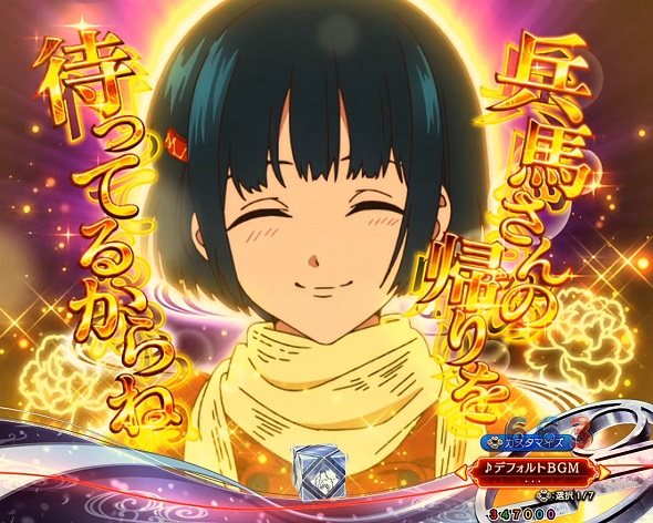 誓い予告 トータル期待度 94.7% 付喪神バトルSP 心せよルート トータル期待度 86.9% 兵馬の決意予告 トータル期待度(※成功時トータル) 85.0% 藁座廻決戦SP トータル期待度(※「時雨」「天日」トータル) 72.3% ※HAZUSE調べによるものです。