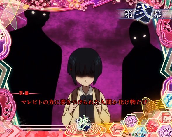 付喪神つきまとい予告 付喪神の数パターン(最終) 期待度 1体 2.8% 3体 2.7% 大量 66.8% トータル期待度 4.1% 兵馬の決意予告 兵馬キメ画面色パターン 期待度 金 84.9% 虹 大当り濃厚 トータル期待度(ガセ込み) 36.0% ぼたん回想連続予告 「第壱幕」テロップ色パターン 期待度 白 0.3% 赤 86.2% 金 95.0% 「第弐幕」テロップ色パターン 期待度 白 0.3% 赤 76.0% 金 94.9% 「第参幕」婚礼調度EP テロップ色パターン 期待度 白 38.4% 赤 69.4% 金 94.9% 「第参幕」兵馬EP テロップ色パターン 期待度 金 94.6% トータル期待度 0.7% 付喪ノ語り あらすじ1回目テロップ色パターン 期待度 白 8.4% 赤 89.6% 金 95.0% チャンスアップ 期待度 白 21.7% 赤 80.8% 金 94.7% チャンスアップ 期待度 白 33.7% 赤 64.1% 金 94.8% トータル期待度 8.7% 婚礼調度 薙予告 斬撃痕の色パターン 期待度 白 6.9% 赤 61.7% 金 93.4% 画面の内容パターン 期待度 左右バラケ目 0.3% 左右図柄テンパイ 16.7% 連続予告図柄 30.9% 紅月ZONE 77.3% 現人神ZONE 94.7% トータル期待度(ガセ込み) 5.4% マレビト覗き予告 手から出す発展先パターン 期待度 テンパイ図柄 42.0% 紅月ZONE 42.9% 現人神ZONE 91.9% トータル期待度 56.3% 紅月煽り予告 煽り後の分岐 期待度 失敗 1.9% 成功 48.4% トータル期待度 8.4% 次回予告 チャンスアップ 期待度 次回 激熱 94.7% 次回 確定 大当り濃厚 次回 婚礼調度 94.8% 次回 全回転 大当り濃厚 次回 誓い 95.0% 次回 火掻 69.1% 次回 挽切 72.1% 次回 爪弾 77.2% 次回 過去 88.8% 次回 顕現 98.4% 次回 時雨 80.3% 次回 天日 94.8% トータル期待度 86.3% 引手連続予告 連続予告パターン 期待度 弐連撃 38.4% 弐連撃→参連撃 84.1% 参連撃 82.0% トータル期待度 50.1% 縁結び予告 ボタンパターン 期待度 デフォルト 83.7% 赤 94.7% 縁を結ぶキャラパターン 期待度 薙 88.1% 鏡 87.5% 硯 87.7% 結 79.7% 羽織 95.0% 匣 大当り濃厚 ぼたん 94.5% 良縁イルミ色パターン 期待度 赤 83.8% 金 95.0% 虹 大当り濃厚 鏡信頼度示唆パターン 期待度 40% 80.7% 50% 90.5% 60% 94.5% 77% 大当り濃厚 トータル期待度 84.4% 狂気の笑み予告 トータル期待度 74.1% 図柄封印予告 エフェクト色パターン 期待度 白 30.8% 赤 71.0% 金 94.9% 虹 大当り濃厚 トータル期待度 44.8% ※HAZUSE調べによるものです。