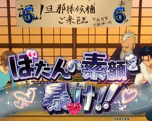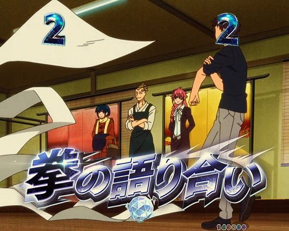 ぼたんの奉仕活動 タイトル色パターン 期待度 デフォルト 17.5% 赤 94.9% チャンスアップカットイン(兵馬の反応) 期待度 なし 16.9% あり 79.7% 突アツカットイン 期待度 なし 20.3% あり 95.0% テロップ色パターン 期待度 デフォルト 16.7% 赤 94.5% トータル期待度 20.3% 拳の語り合い タイトル色パターン 期待度 デフォルト 14.6% 赤 94.6% チャンスアップカットイン(攻撃を喰らう兵馬) 期待度 なし 13.9% あり 80.6% 突アツカットイン 期待度 なし 17.5% あり 94.5% テロップ色パターン 期待度 デフォルト 13.8% 赤 95.0% トータル期待度 17.6% ぼたんの素顔を暴け タイトル色パターン 期待度 デフォルト 39.9% 赤 94.5% チャンスアップカットイン(兵馬の回想) 期待度 なし 39.4% あり 80.0% 突アツカットイン 期待度 なし 45.2% あり 94.9% テロップ色パターン 期待度 デフォルト 38.4% 赤 94.5% トータル期待度 45.2% 己の引手を解き放て タイトル色パターン 期待度 デフォルト 39.9% 赤 94.8% チャンスアップカットイン(ぼたんの回想) 期待度 なし 39.5% あり 79.8% 突アツカットイン 期待度 なし 45.2% あり 94.9% テロップ色パターン 期待度 デフォルト 38.3% 赤 95.0% トータル期待度 45.2% ※HAZUSE調べによるものです。