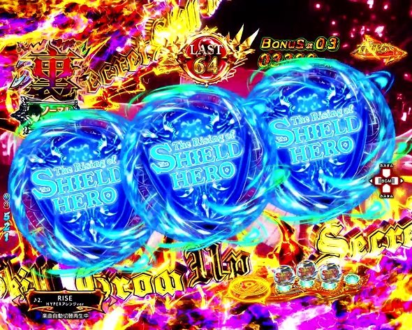 アルティメットBONUS MAX 通常時の全回転リーチから発生する3000個+αの大当り。消化後は裏アルティメットタイムへ突入する。 アルティメットBONUS 通常時の波襲来BATTLE勝利から発生する1800個+αの大当り。消化後は裏アルティメットタイムへ突入する。 盾の勇者の成り上がりBONUS 通常時に発生する300個の大当り。消化中に発生するRISINGチャレンジ成功でRISING RUSHへ突入し、失敗で通常時へ戻る。 ※HAZUSE調べによるものです。