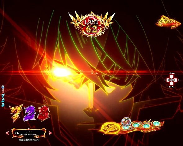 裏アルティメットタイム 初当り後の一部やRISING RUSH中の大当りから突入する上位モード。大当り時は1500個or3000個+αとなっており、残保留での大当りは3000個+αが濃厚となる。裏アルティメットタイムの継続期待度は約85%(※継続率は残保留込み(残保留引き戻し時は3000個+α))。 ※HAZUSE調べによるものです。