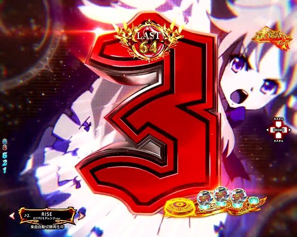 RISING RUSH 盾の勇者の成り上がりBONUS中のRISINGチャレンジ成功から突入するモード。「裏アルティメットタイム」突入をかけたバトルタイプ。バトル勝利でRUSH「裏アルティメットタイム」へ突入する。RISING RUSHの突破率は約40%(※転落小当り当選で終了(勝率約40%))。 ※画像は兄弟機のものを含みます。※HAZUSE調べによるものです。