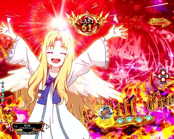 私はあなたの剣です予告 リーチ後に発生すれば期待大。 トータル期待度 約90% BRAVE ROAD 突入時点で期待高となるゾーン予告。 トータル期待度 約80% 聖邪決戦リーチ 教皇とのバトルに勝利で大当り濃厚となる本機最強リーチ。 トータル期待度 約80% 憤怒の盾 リーチ後や「VSリーチ」中などに発生すれば期待高。 トータル期待度 約80% ※画像は兄弟機のものを含みます。※HAZUSE調べによるものです。