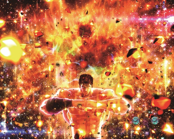リーチ後ボタン ボタンプッシュで様々な演出が発生する。 強敵背景 発生すれば期待度大幅アップ、プレミアムパターンも複数存在する。 世紀末救世主予告 発生すれば真剣バトルリーチ以上への発展が濃厚となり、演出の最後にケンシロウが百裂拳を放てば期待度大幅アップ。 SP発展演出 リーチ発生後に死兆星役物が発動すると、登場した強敵に対応したSPリーチへ発展する。 ※HAZUSE調べによるものです。