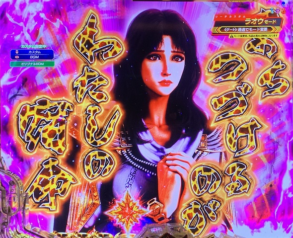 図柄フリーズ 変動開始時に図柄がロックされ、オーラの色が変化するほど期待度がアップする。 ロゴ役物発光 ロゴ役物がフラッシュし、色が赤なら期待度アップ。 暴凶星予告 暴凶星ラオウリーチへ発展する期待大の予告。 セリフ予告 吹き出しの色が赤なら期待度アップ。 ステップアップ予告 ステージによってステップアップの種類が異なるが、文字色が赤やキリン柄なら期待大。 デカセリフ予告 セリフの色がキリン柄なら期待大。 ※HAZUSE調べによるものです。
