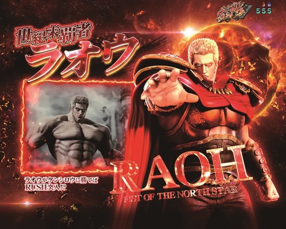 暴凶ZONE 突入すれば期待度大幅アップとなる先読みゾーン、上位の拳王ZONEなら大当り濃厚。 暴凶星予告 変動開始時などに発生すれば暴凶星ラオウリーチ発展濃厚。 闘神バトル 神拳バトル中にケンシロウが闘神化すれば期待度大幅アップ。 暴凶星ラオウリーチ ケンシロウとラオウのバトルが展開する本機最強リーチ。選択したキャラが勝利すれば大当り濃厚。 ※HAZUSE調べによるものです。