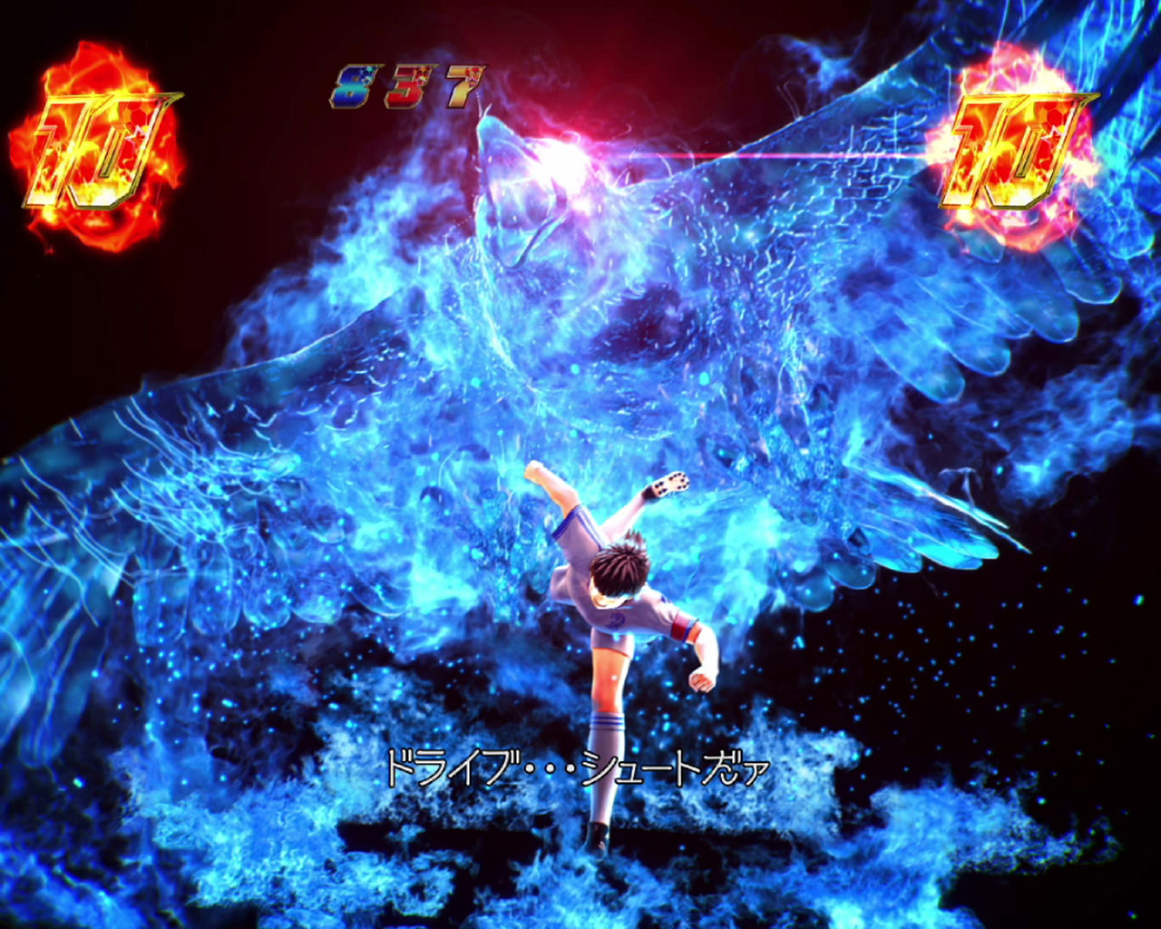 【2Dキャラクターリーチ】 「久美」「森崎特訓」「早苗」の3パターンが存在。ハズレ後にSPリーチへ発展する場合あり。 【GKノーマルリーチ】 GKが図柄を止めるリーチ。GKは「若林」「森崎」の2パターンが存在。中図柄に停止した図柄によって擬似連や他のリーチに発展する場合もあり。 【ドライブシュート完成リーチ】 翼がドライブシュートを完成させれば大当たりとなる。ロベルトのカットインや、驚きカットインなどが発生するとチャンスアップとなる。 【楽曲系リーチ】 ライバル系と翼の2パターンが存在。リーチの途中で他のリーチに発展する場合もあり。