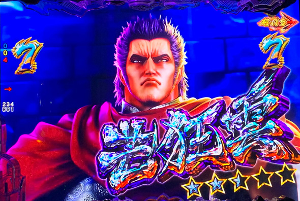 リーチライン予告 図柄テンパイ時のラインパターンで期待度を示唆する。 連続予告発生前 期待度 デフォルト 1.0% 赤 35.2% 金 85.7% 連続予告発生後 期待度 デフォルト 13.2% 赤 13.9% 金 83.5% 図柄アクション予告 図柄のアクションパターンで期待度を示唆する。 連続予告発生前 期待度 デフォルト 1.0% 強パターン 43.8% 連続予告発生後 期待度 デフォルト 12.2% 強パターン 17.6% 役モノ予告 赤パターンで期待度大幅アップ。背景カットインにも期待。 連続予告発生前 期待度 赤成功 76.2% 背景カットイン 期待度 デフォルト 10.3% 拳志郎&玉玲 15.5% キャラ集合 41.5% 拳志郎 50.7% 秘孔予告 エフェクトが強パターンなら期待高。 エフェクト 期待度 デフォルト 1.0% 強パターン 33.6% ルーレット予告 停止したパネルの演出に発展。 アイコン 期待度 フルボッコタイム 21.1% ダンシングショー 23.0% ドラゴンクラッシュ 24.9% 50%チャレンジ 50.2% 突発天帰 75.0% 直撃天授 89.9% ※HAZUSE調べによるものです。