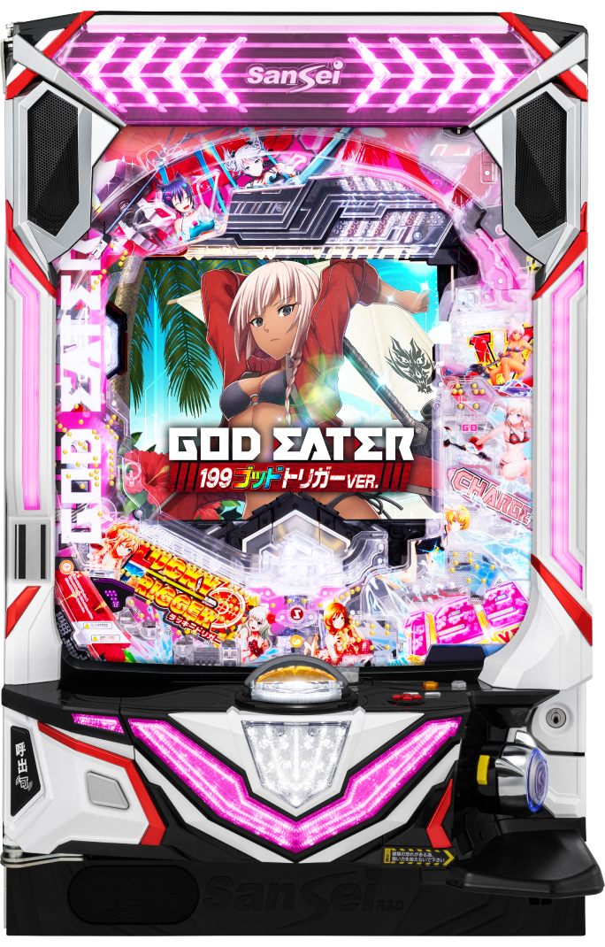 神覚醒予告 主に成約達成を契機に発生する期待大の予告。 神速神撃演出 バトルSPリーチ中の結合崩壊Lv3到達で発生する期待大の演出。 神激熱予告 変動開始直後からあらゆるタイミングで発生すれば大当り濃厚となる予告。 最強荒神SPリーチ ゴッドイーターが集結して最強荒神討伐に挑む、本機最強リーチ。 ※画像は兄弟機のものを含みます。※HAZUSE調べによるものです。