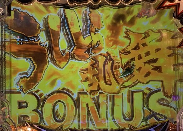 超うしとらBONUS 通常時に発生する10R大当り。消化後は真うしとらRUSHへ突入する。 うしとらBONUS 通常時に発生する10R大当り。消化中の昇格演出成功で真うしとらRUSHへ突入、失敗で通常時に戻る。 ※HAZUSE調べによるものです。