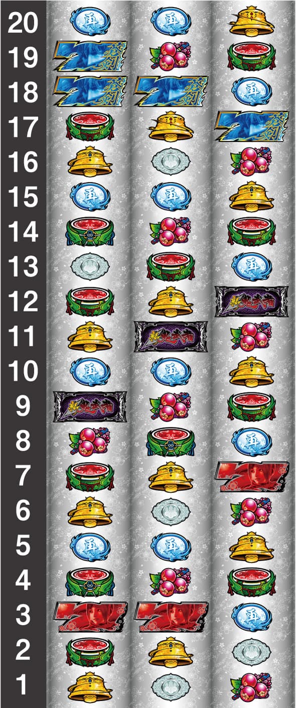 設定差のない小役確率 フラグ 全設定共通 強リプレイ 1/13107.2 強ベル 1/993.0 弱チェリー 1/102.2 強チェリー 1/269.7 弱スイカ 1/123.7 強スイカ 1/13107.2 弱チャンス目 1/168.9 強チャンス目 1/383.3 リーチ目(リーチ目高確率中のみ) 1/30.4 レア小役合成 1/32.0 ※HAZUSE調べによるものです。