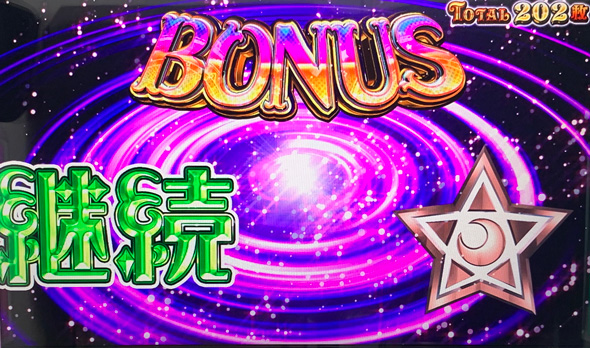 第3停止まで続いた場合は魔法陣が消えるパターンと残るパターンの2種類 残ればボーナス濃厚、消えてもボーナスの期待高 |