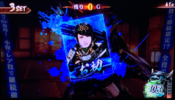 【Eフラッシュ(ピンク)】 一閃フリーズ発生or青剣BONUS+「鬼斬乱舞」突入濃厚 |