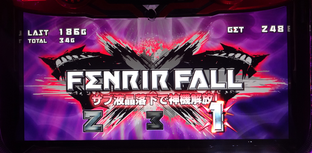 フェンリルフォール 神機解放 フェンリルフォール演出から突入する可能性あり。「フェンリル」落下で「神機解放」に突入となる。「神機解放」は継続率管理の毎ゲーム上乗せ特化ゾーン。継続するたびに必ずゲーム数を上乗せする。▼突入契機フェンリルフォール演出成功時。