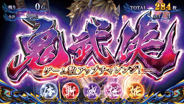 レア小役成立時はバッサリポイント特化ゾーン「鬼斬チャージ」抽選が行われる。