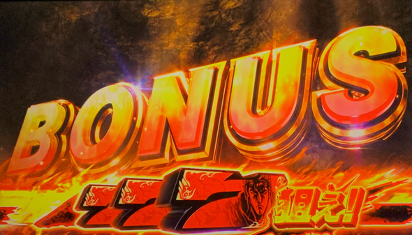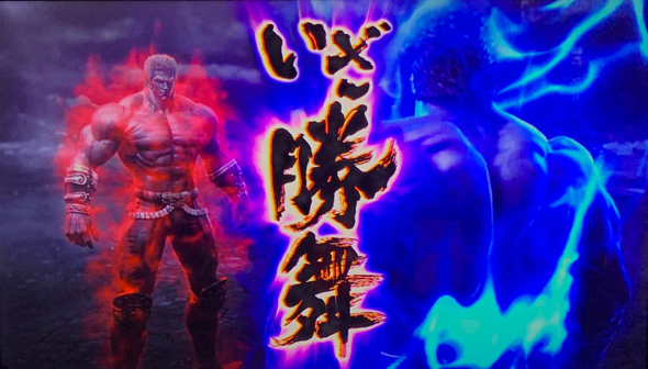 基本的なゲーム性はAT「闘神演舞」と同様で、セット消化中の「赤勝舞魂」獲得期待度がアップ+継続バトル「裏神拳勝舞」の勝利期待度が大幅にアップしている。
