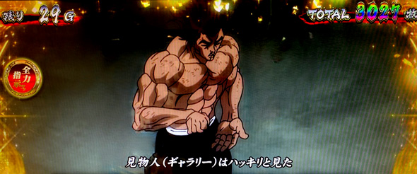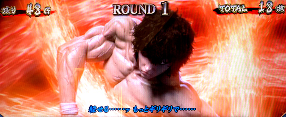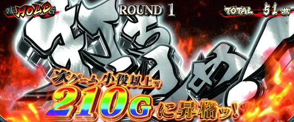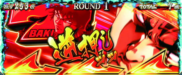 ゲーム数上乗せ時や腕力比較べ勝利時は上乗せゲーム数自力昇格チャレンジ「乾坤一擲チャンス」へ突入。成功期待度は約24%。