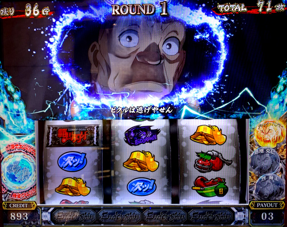 通常時のボーナス「範馬BONUS」は25ゲーム継続、純増約2.8枚。