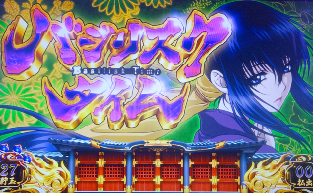 バジリスクタイム突入画面では、登場するキャラクターによってARTのモードが示唆される。