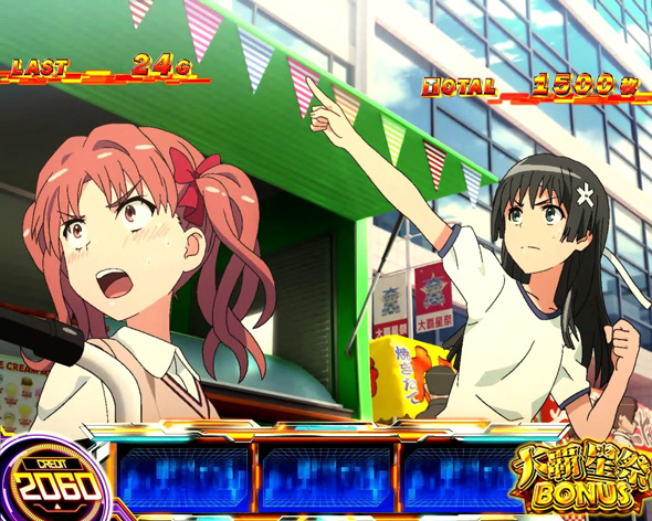 ボーナスは「女王BONUS」「超電磁砲BONUS」「大覇星祭BONUS」「LEVEL5 BONUS」の4種類、純増約4.0枚。