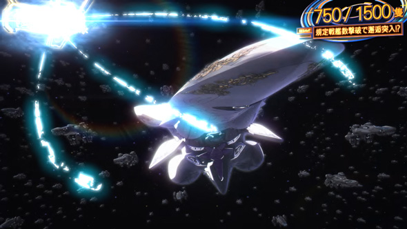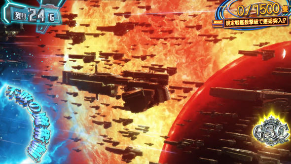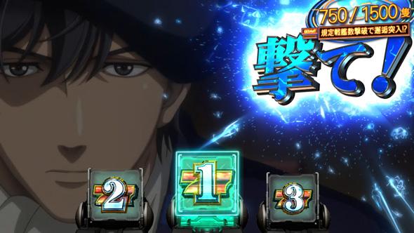 消化中は成立役に応じて7揃い抽選が行われ、7揃いで枚数上乗せ+敵艦隊撃破濃厚となる。