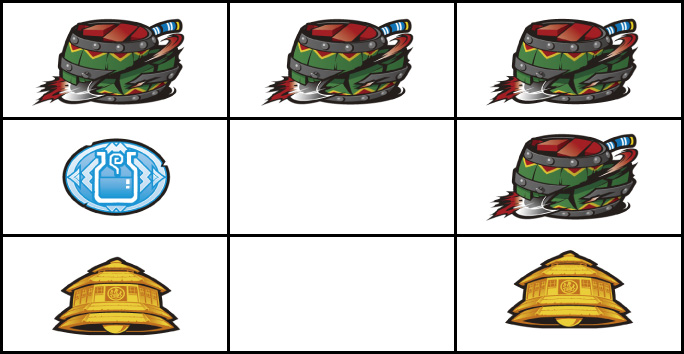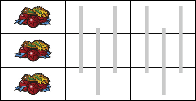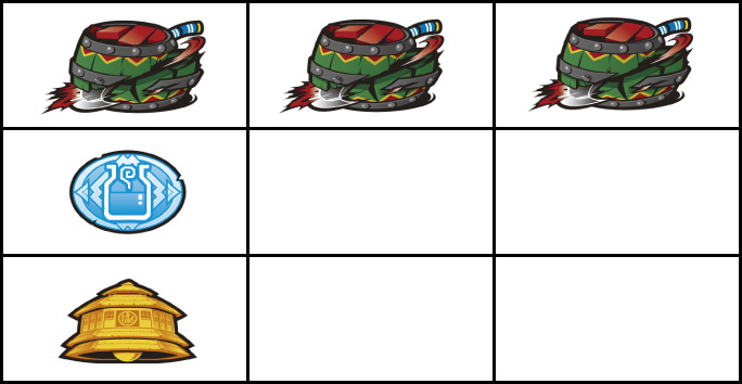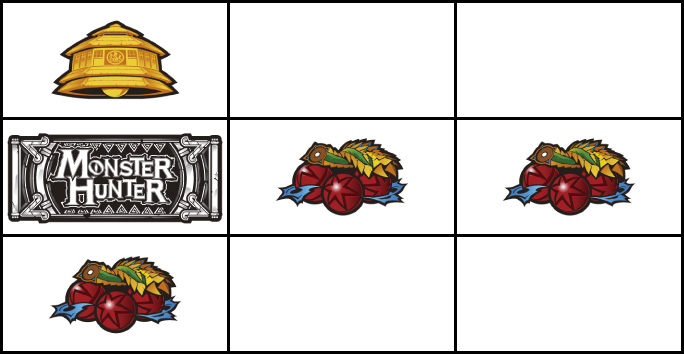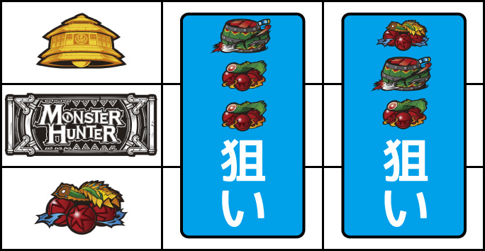 スイカをフォローする打ち方(チェリーはリプレイフラグなので取りこぼしはない)。 スイカ成立時は右リールに「2連スイカ」を狙う事によってスイカの種類(AorB)が見抜ける。 初めに左リールに「BAR」絵柄下のチェリーを狙う (枠上にBARを止める感じ) ▼左リール中段にチェリー停止時 【成立役】激熱チェリー 中・右リール適当でOK ▼左リール下段にチェリー停止時 【成立役】弱チェリーor強チェリーor激熱チェリー 中リールに2連チェリーを狙い、右リールに「チェリー・スイカ・チェリー」を狙う 【弱チェリー】 【強チェリー】 【激熱チェリー】 ▼左リール上段にスイカ停止時 【成立役】スイカor強ベルor強チャンス目 中・右リールにスイカ狙い。 右リールは「スイカ・スイカ・ベル(BARを枠上を目安)」のスイカを狙うとスイカの種類(AorB)が判別出来る。 【弱スイカ】 【強スイカA】 【強スイカB】 【強チャンス目】 【強ベル】 ※スイカが斜めに揃ったら、弱スイカ。 ※スイカが平行に揃ったら、強スイカ。 ※スイカが揃わずにリール枠がフラッシュした場合、強チャンス目となる。 ※ベルが斜め右上がりに揃ったら強ベル ▼左リール中段にスイカ停止時 【成立役】強スイカBorリーチ目orチェリーの取りこぼしの可能性あり 中・右リールにBARを目安にスイカ狙い 【強スイカB】 ▼上記以外 【成立役】弱チャンス目orハズレ 中・右リール適当打ちでOK 【弱チャンス目】 【弱チャンス目】 ※チャンス目時はリール枠がフラッシュする。