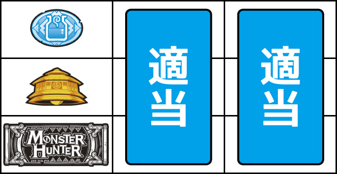 ▼押し順ナビ発生時押し順に従い、リールを停止する。▼「◯◯を狙え!!」発生時押し順ナビに従いながら、指定された図柄を全リールに狙う。ボーナス(AT)中のBAR揃いで大タル爆弾。(大ダメージのチャンス)▼上記以外通常時の打ち方で消化する。