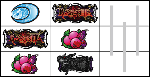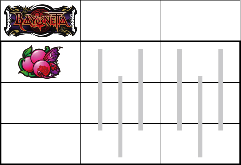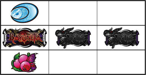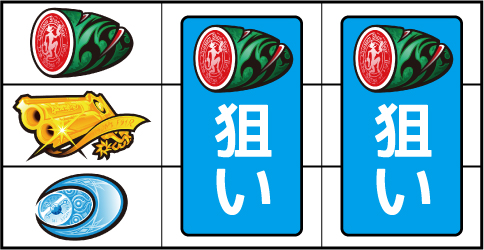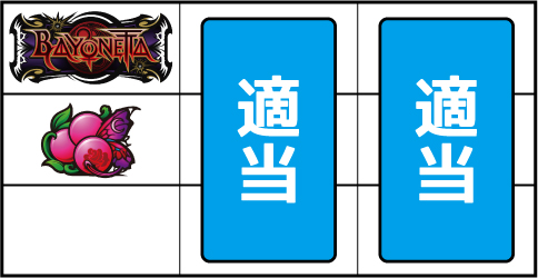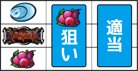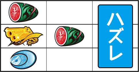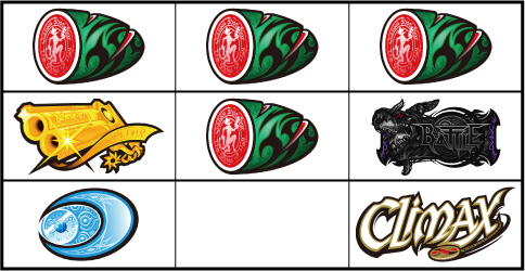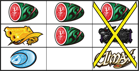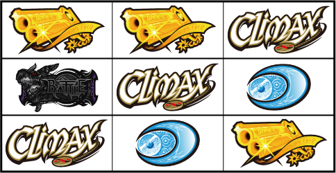 基本的に小役の取りこぼしはないが、小役判別のためサブリール上での目押しが推奨される。左リール枠上付近にBARを狙う。 ▼左リール上段にスイカ停止時 【成立役】スイカ or 弱チャンス目 or 強チャンス目 or 大チャンス目 中・右リールにスイカを狙う。(中・右リールのスイカはクライマックス図柄を目安に)※ベルテンパイハズレ=弱チャンス目※スイカテンパイハズレ=強チャンス目※中リール2連スイカテンパイ=強チャンス目 or 大チャンス目※中リール2連スイカ・スイカ平行揃い=大チャンス目 【弱チャンス目】 【強チャンス目】 【大チャンス目】 ▼左リール下段にチェリー停止時 【成立役】弱チェリー or 強チェリー or バトル目 中リールにチェリーを狙い、右リールは適当打ち。(中リールのチェリーはBAR目安に)※右リール上段ベル=弱チェリー※右リール上段ベル非停止=強チェリー※中リール上段BAR停止=強チェリー 【弱チェリー】 【強チェリー】 【バトル目】 ▼左リール中段にチェリー停止時 【成立役】超チャンス目 左・右リールに適当打ちでOK。(狙えばBARが揃う) 【超チャンス目】 ▼上記以外の停止系 【成立役】ハズレ or リプレイ or ベル or バトル目 or 弱チャンス目 or 大チャンス目 中・右リール適当打ち。※上段[ベル・ベル・リプレイ]停止=弱チャンス目※斜めベルテンパイ・右リール中段ベル=弱チャンス目※右上がりBAR揃い=大チャンス目※クライマックス図柄揃い=大チャンス目 【バトル目】 【弱チャンス目】 【大チャンス目】