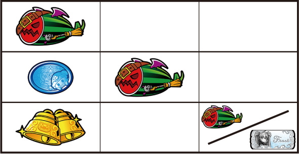 ③左リール枠内にカボチャ図柄停止後は右リール適当打ちで14枚役を獲得 獲得後は順押し適当打ち消化でOK |