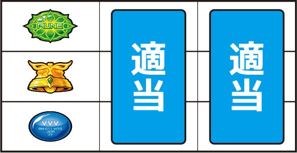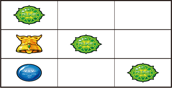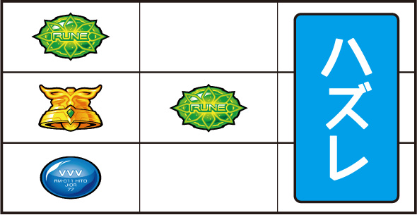 左リール枠上~上段にBARを狙う 【Point】・押し順ナビなし時は左第1停止を推奨。・取りこぼす小役が存在しないため、全リール適当打ちでもOK。 ▼左リール下段にチェリー停止時 【成立役】チェリールーン 中・右リール適当打ちでOK。 【チェリールーン】 ▼左リール下段にBAR停止時 【成立役】ハズレorリプレイorベルorルーン1個 中・右リール適当打ちでOK。 【ルーン1個】 ▼左リール上段にルーン図柄停止時 【成立役】ルーン1個orルーン2個orルーン3個 中・右リール適当打ちでOK。 【ルーン1個】 【ルーン2個】 【ルーン2個】 【ルーン3個】