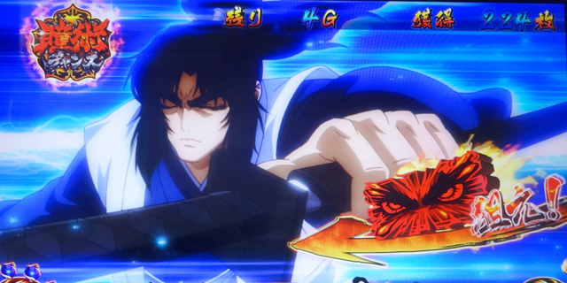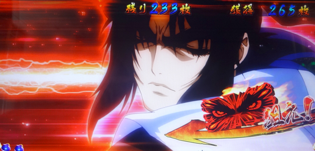 通常時は全リールフリー打ちでOK。ボーナス当選時のみボーナス図柄目押しの必要あり。※巻物揃い=巻物※中段[ベル・ベル・リプレイ]停止=チャンス9枚役※3連チェリー=強チェリー 【巻物】 【チャンス9枚役】 【弱チェリー】 【強チェリー】