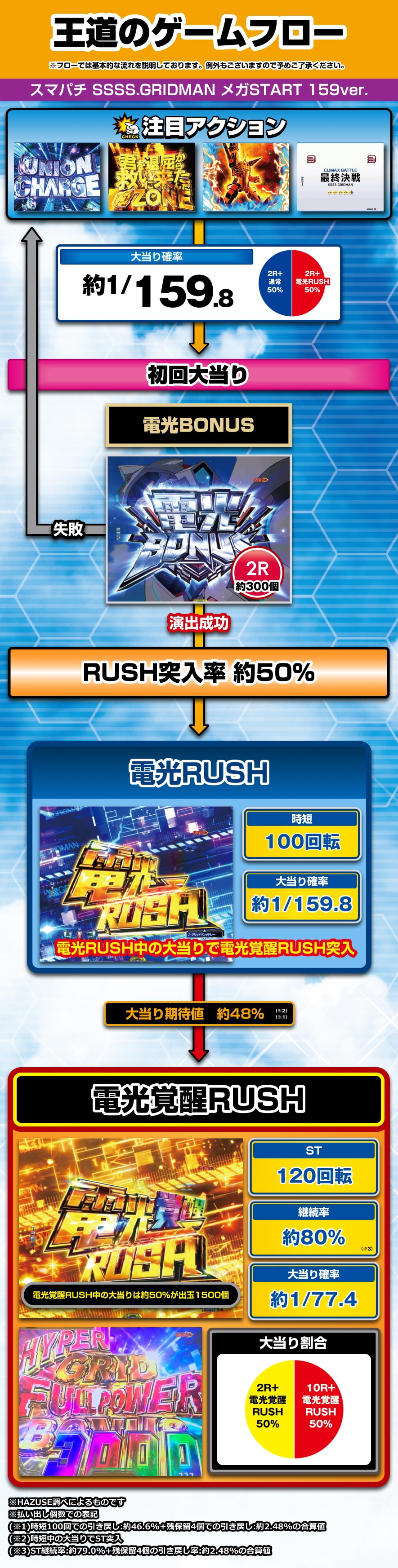 電光RUSH中の大当り後から突入する上位モード。 消化中は大当り時の50%で10R当選となる。