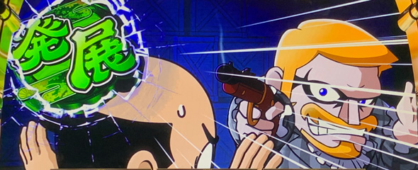 CZ「悪人成敗チャンス」は「BARを狙え!」カットイン3回発生まで継続、勝利期待度約55%。