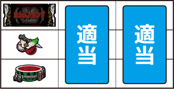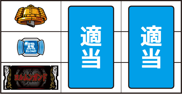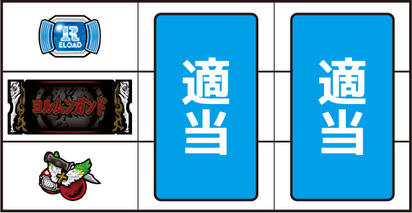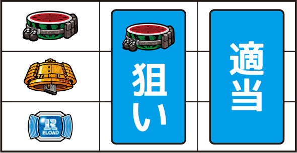 ▼押し順ナビ発生時押し順ナビに従い、リールを停止させる。▼「×・?・?」ナビ発生時中or右リールを押し、残りのリールは適当打ちで消化する。▼「〇〇を狙え」カットイン発生時狙えカットインが発生した場合は、指定された図柄を狙って消化する。▼上記以外通常時の打ち方で消化する。